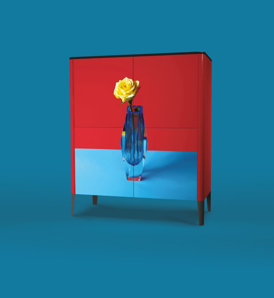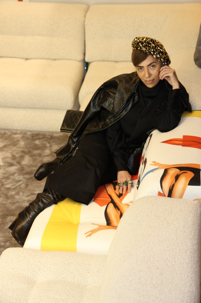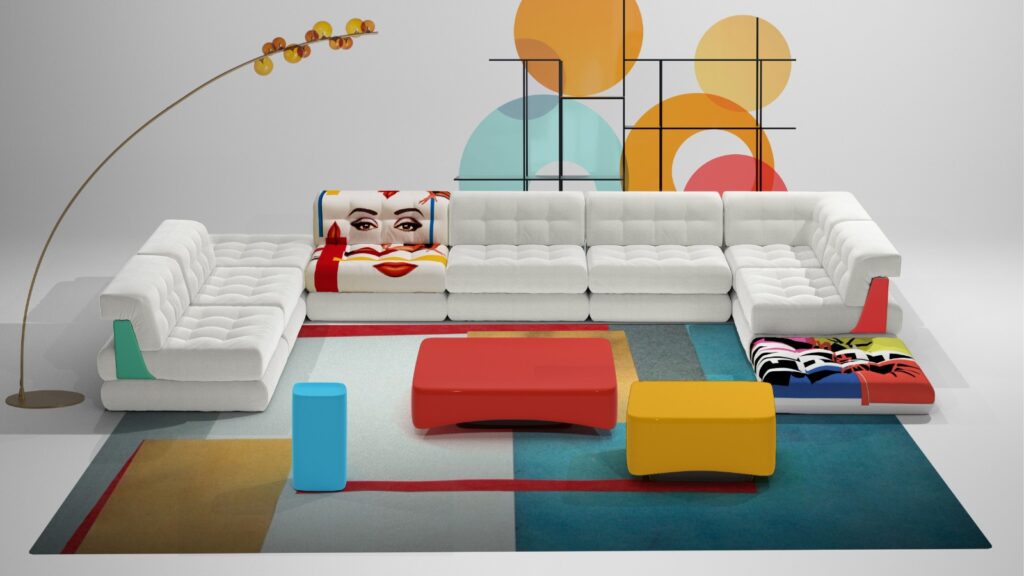 Un trabajo inspirado en su cine y en su universo estético: colores vibrantes, humor, exceso y teatralidad. La propuesta incluye sofás, mesas, alfombras, cojines y piezas creadas en complicidad con Rossy de Palma. La actriz española y figura icónica del cine almodovariano reconocida internacionalmente por su estilo único y vanguardista. Cada pieza funciona como un objeto narrativo cargado de memoria visual y referencias a sus películas más emblemáticas.