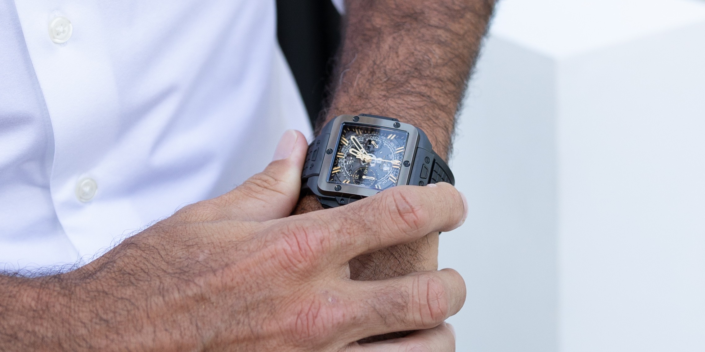 La experiencia se completa con la presencia de Hublot, que acompaña la propuesta con sus icónicos relojes Classic Fusion y la colección Big Bang, reforzando el concepto de lujo contemporáneo y precisión.