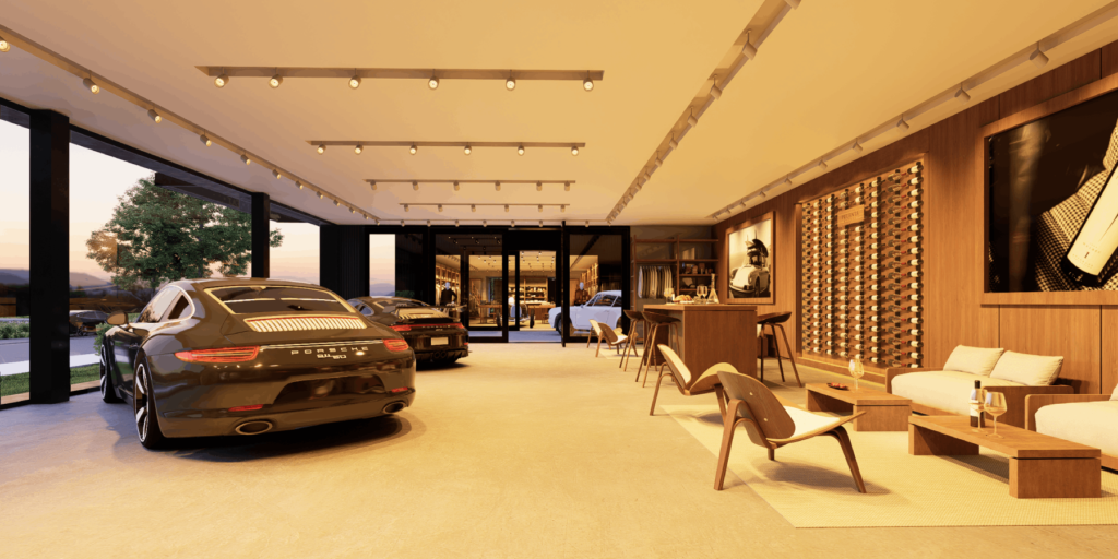 Allí, el público puede disfrutar de: una cava con la línea completa de vinos de Pulenta Estate, una selección curada de modelos Porsche en exhibición y una atmósfera minimalista y cuidadosamente diseñada.