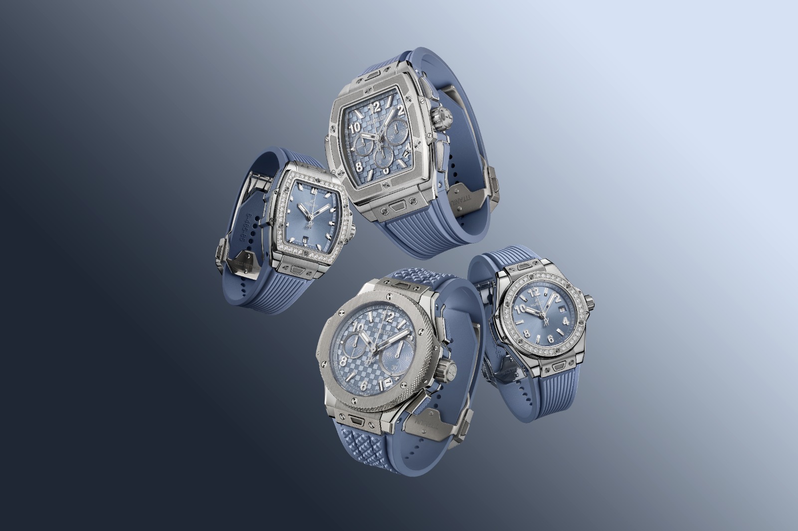 Este tono exclusivo, un azul saturado con matices tormentosos y minerales, revela reflejos naturales bajo determinados ángulos de luz. Se trata de un color raro y difícil de captar, que fusiona gris, negro y azul. Hublot se ha centrado en combinar su profundidad mineral con su brillo natural.